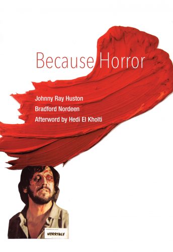 The following essay is excerpted from Because Horror (Dirty Looks and Semiotext(e)). Edited by Johnny Ray Huston and Bradford Nordeeen, with Afterward and artwork by Hedi El Kholti, Because Horror is a collection of 13 essays (including one poem) that mixes critical writing and memoir to explore horror movies and how they haunt memory.