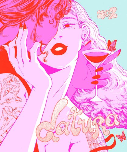 There are currently two issues of Datura Magazine, an adult comics anthology inspired by josei manga. I picked up Issue 1 at a queer zine fest because the book itself is a work of art, beautifully riso-printed with a little holographic sticker of their namesake, a poisonous flower, inside. The stories range from fantastical to everyday, and every single one is perfect.